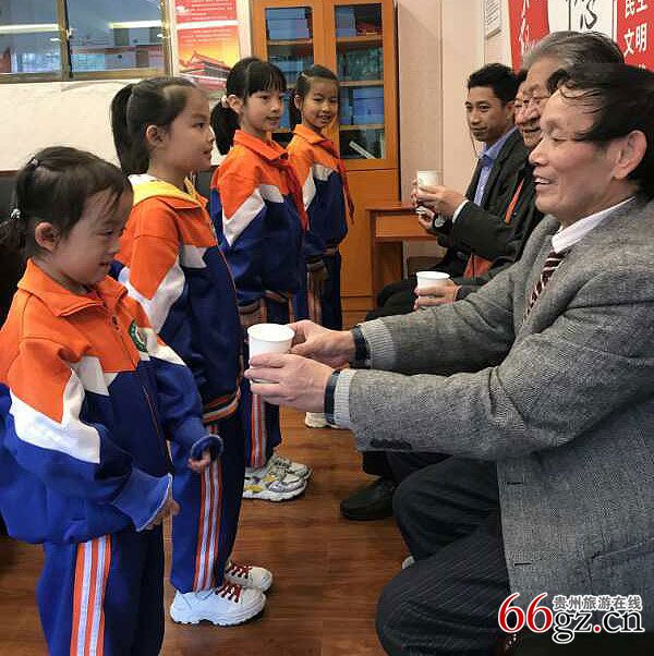 学生们向作家爷爷敬茶,传承中华民族尊老爱幼的优良传统。城西小学少先队大队部供稿