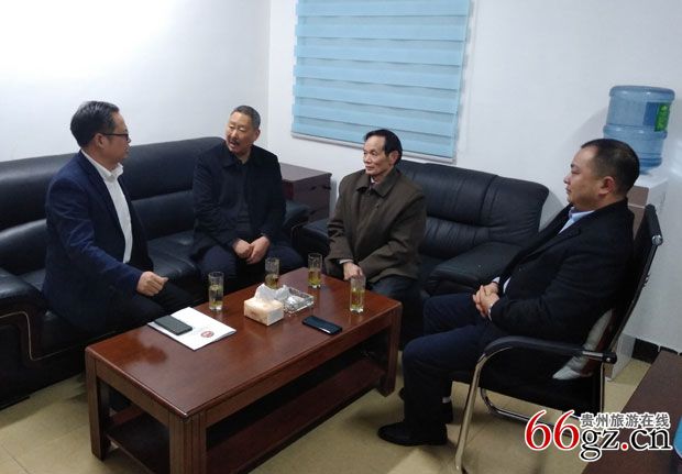 贵阳科学技术普及作家协会秘书长罗万雄高级记者与松桃县投资促进局领导和企业家金先生商谈项目事宜。石绍军 摄