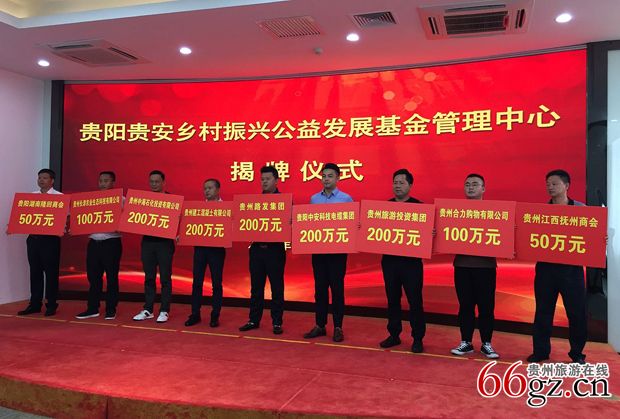揭牌仪式现场,贵州路发集团、贵阳中安科技电缆集团、贵州建工混凝土有限公司、贵州旅游投资集团、贵州中海石化投资有限公司、贵州长津农业生态科技有限公司等企业向贵阳贵安乡村振兴公益事业发起爱心捐赠。