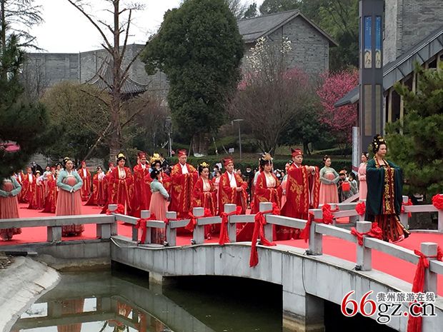3月5日星期六,位于贵阳花溪国家城市湿地公园里的贵阳孔学堂一反往常的宁静,悠扬的乐声迎来一拨拨欢乐的客人——贵阳市妇联、贵阳孔学堂文化传播中心、共青团贵阳市委,在这里联合主办 “弘扬时代新风 倡导婚事新办”集体婚礼。在阳明大讲堂的前院里,绿树中的玉兰花、樱桃花争奇斗艳,一条巨型红地毯从大门一直铺进大厅,营造出浓郁的“庆三八、办婚礼”氛围。