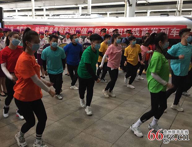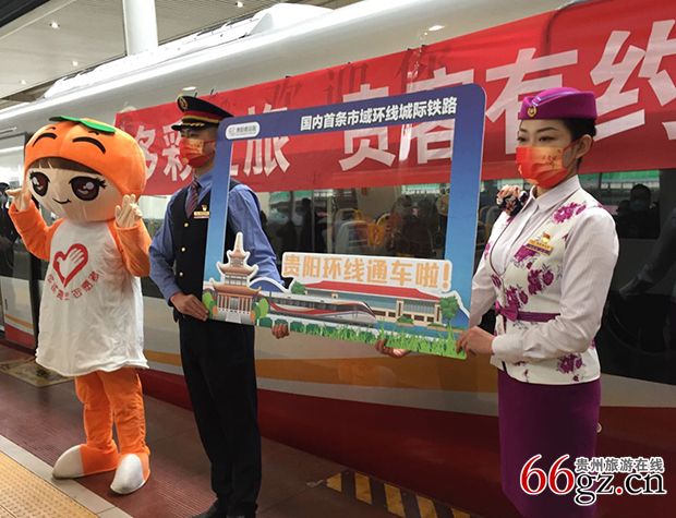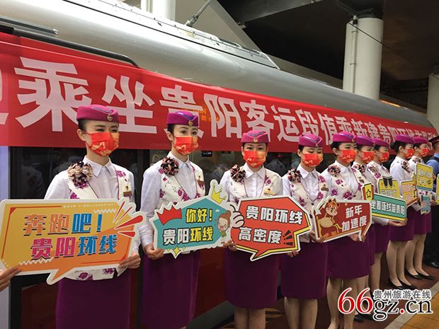 首先,动车一队展示出新建贵阳环线山水写意长卷,拉开了首发式序幕。接着,文艺表演队献上快闪舞蹈“爽爽的贵阳”等精彩节目,列车工作人员手持同框板与旅客合影留念。9点16分,列车开离贵阳北站,标志着贵阳环线铁路全线通车,贵阳进入城市环线铁路时代。