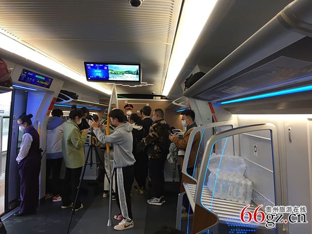 车窗外青山绿水、春意盎然,列车里欢声笑语、热气腾腾。各个车厢里,采访的记者们无处不在:市民刘阿姨等特地来体验舒适安全的市域环城快铁;73岁的孟关乡贺绿寨村民蒙老伯家就在孟关旁边,亲眼看到、时刻关注着快铁的建设,特意花14元买一张孟关站到贵阳北站的首发车票,坐上玩玩并亲身体验一下;钟女士带着6岁孩子感受快捷、舒适的现代交通工具,教育孩子好好学习、天天向上,成为国家有用之才。