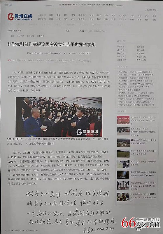 著名医学科学家、贵州省政协第七、八届副主席吴若秋建议省政府奖励科技发明成果。 贵州在线 供稿