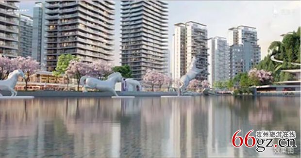 所辖阿哈湖面积最大的南明区在“十四五”规划中提出,加快推进阿哈湖工业设计小镇项目落地建设,推动工业设计集聚化、产业化发展,成为百亿级产业集群,阿哈湖“绿心”所带来的价值更加彰显;为实施国家新型城镇化战略,与贵州“强省会”战略同频共振,与贵阳“一心三核”城市空间布局共生长,还规划紧挨贵阳“绿心”,实施贵阳铁建城项目。从“城市未来、自然环境、社区文明、智慧科技”4个层面(即山水相融体现生态标杆、片区开发穿越时代变迁、时尚进驻感知缤纷生活、数字赋能引领未来人居)施工的贵阳铁建城项目,将打造一个基于生态湿地公园生活场景的饮马湖城市水体公园,为贵阳市首个内容运营型公园,其生态景观天成,人与自然和谐共生,犹如镶嵌在阿哈湖边的璀璨明珠,为市民提供“随走、随看、随停、随坐” 的休闲体验。目前公园南区建设已完成70%,铁建城放弃传统的物理设备方案而采用生态治理方案,将水域打造成小型的纯生态净水循环系统。现已建成南区部分水域,湖底种植高约30厘米、不突出水面影响美观的矮生苦草,具有修复富营养水体、去除水体污染物功能,可使湖水清澈见底、养眼养心,后期再投放鱼虾及螺贝类水生动物。饮马湖湖岸以名为“染井吉野”的特色樱花进行绿化、美化,花期比其它品种提前近一个月,将成为理想的赏花旅游胜地;饮马湖北区正加紧建设,贵阳市民钟情的“八匹马”雕塑将屹立在北区水景中,呈现一幅从静态站立—开始奔跑——加速飞驰的骏马奔腾图。其巧妙设计是,最后一匹马直奔向贵阳国际马术运动中心,让人们从观赏雕塑马到亲身体验马术运动,将湖光山色旅游与体育健身旅游融为一体。