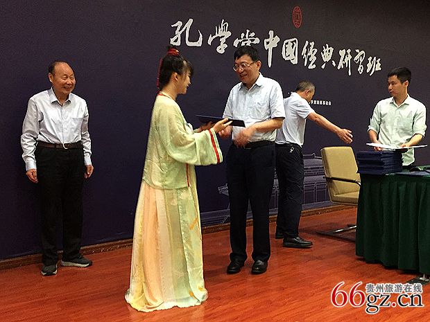 8月5日下午,山城贵阳经过一场阵雨的洗礼,凉爽赶走了炎热。掩映在山水间的贵阳孔学堂举行高等研究院第一届中国经典研习班结业仪式,向几十位学子颁发了结业证书。