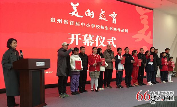 12月9日上午,贵州省“美的教育”中小学校师生书画作品展(简称作品展)在贵州美术馆开幕,为获奖教师、学生代表颁奖。作品展旨在深入贯彻习近平总书记关于教育的重要论述,厚植“美的教育”理念,以展促教,推动中小学校美术教育发展,积极为中小学校师生搭建品牌性展览平台,助推学校美育工作高质量发展。