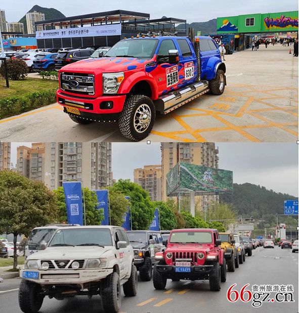 车辆巡游召集越野车100台,汽车、摩托车众多越野爱好者和专业选手积极参与,各式各样的改装车辆色彩明亮、造型酷炫,来自全国各地的车友共同见证速度与激情的精彩时刻,为参加旅发大会的来宾及广大游客带来一场精彩的视觉盛宴。当天,越野车辆在孟关汽贸城区域内出发,途径红星路—孟溪路—贵惠大道—106道—孟关大道—大华路,最终到达越野玩家基地。车辆巡游结束后,越野车队前往高坡云顶草原,全体车友欢聚一堂参加联欢晚会、汽车户外影院、户外露营等活动。