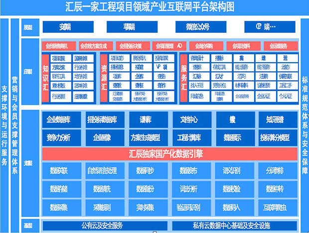 据汇辰科技相关负责人介绍,“汇辰一家工程项目领域产业互联网平台”以“数据引擎”为核心生产底座,是一款集招投标信息、工程资讯、企业信息查询、供需互联为一体的大型垂直性综合平台。致力于为帮助解决工程项目领域企业与企业、企业与项目、项目与项目的人力、物力、财力、资源配置不合理、配置不齐全等问题,提高资源配置效率,加快信息流通速度,保障流通精细化,解决低效率高成本问题,助力健全行业内信用体系,实现线上线下交易服务,让市场开启一种高效透明的交易方式。用以帮助工程领域传统企业和中小企业实现数字化转型,助力普惠性“上云用数赋智”服务。