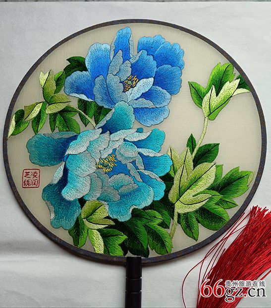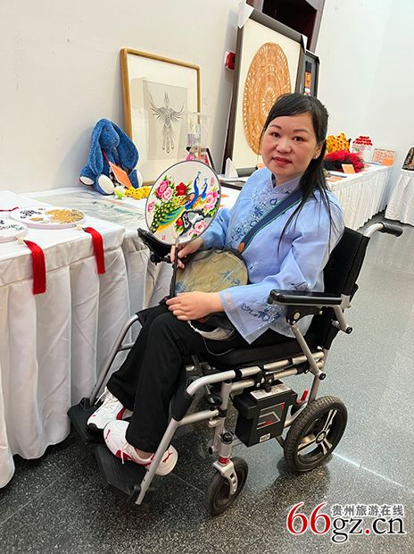 5月17日,在贵阳美术馆开幕的贵阳市第八届残疾人艺术作品展展厅里,残疾人凌润芝第一次走进直播间接受采访,她开朗乐观、积极向上,给参观者留下深刻印象。当天,其作品荣获4项奖:双面绣“花开富贵”扇子获银奖,刺绣“蓝牡丹”扇子和2幅工笔人物画获优秀奖。