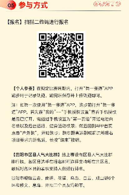 参赛选手必须使用“第一赛道APP”记录跑步轨迹,其成绩方可有效,通过后台补打卡的成绩不计入活动成绩,不计入跑量。跑步健体,健康第一,我们提倡科学跑步,不得通过交通工具、替跑等方式记录跑量,一经发现,作废处理。
