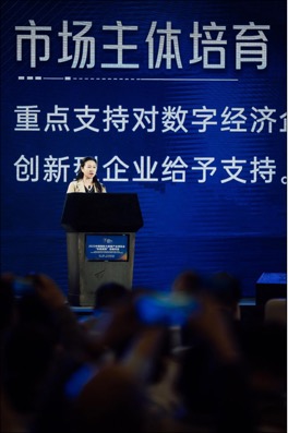 论坛会现场,贵州省大数据发展管理局局长景亚萍对贵州“东数西算”十大政策、十二大场景、一大平台进行正式布。