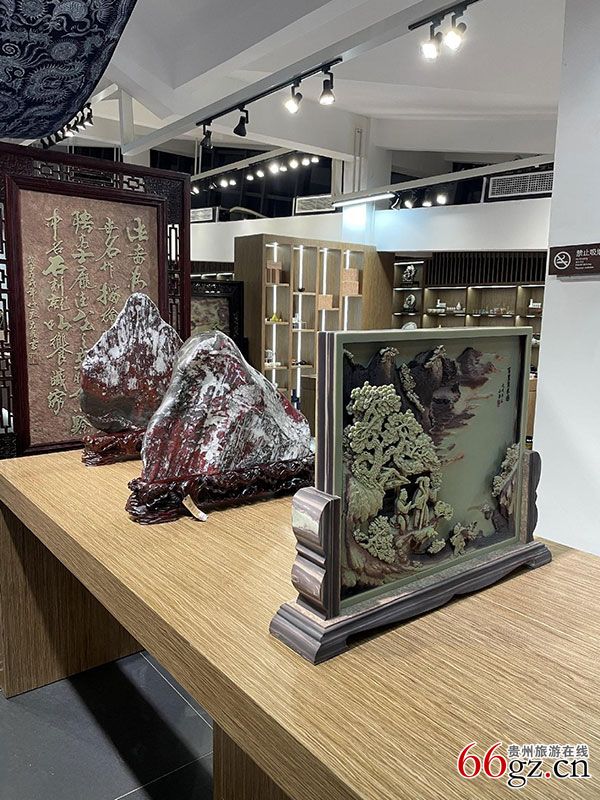 佛教圣地梵净山亿万年来孕育出紫袍玉带石,清朝已为贡品,人民大会堂陈列有贵州紫袍玉带石雕艺术品。黔石聚点公司是如今贵州最大规模紫袍玉带石雕企业,石雕精品荟粹于本馆。