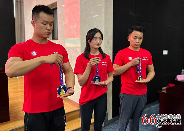 在通气会现场进行了参赛服装和奖牌展示:参赛服装以中国红为主色调,象征着马拉松跑者的活力与热情,彰显马拉松运动永不放弃、开拓创新的精神;奖牌呈多边形螺旋状,整体呈现蓝色透明渐变色,正面为贵阳马拉松logo舞动奔跑者,背面为贵阳市地标建筑甲秀楼。