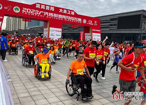 6月10日,2023广汽传祺贵阳马拉松赛(简称“贵马”)在贵阳国际会议展览中心北广场火热举行。在25000参赛者队伍中,由57名肢体残疾人组成的贵州希望之家轮跑团(简称轮跑团)(其中9人参加马拉松,24人参加半程马拉松,24人参加迷你马拉松)格外抢眼,他们身残志坚、顽强拼搏、奋发向上的精神,受到广大参赛者及观众的高度赞扬。