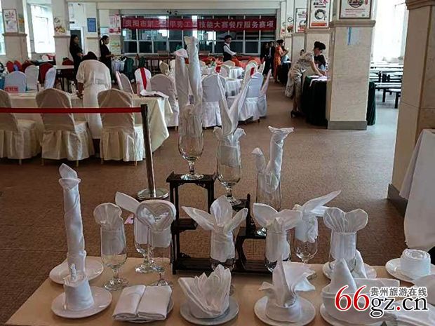 在花艺赛场上,参赛者一人一桌,操作有条不紊,插花作品各有特色,可谓百花齐放。不料,有一位帅小伙也在参赛者之中,其审美情趣和灵巧动作毫不亚于姑娘们。不经意间发现一群着装不同者进场,工作人员对我轻声耳语“是泰国参观团;在一位同学引领下,我们来到餐厅服务赛场,摆台比赛正紧张进行,几十种花样的口布,折叠规范的手巾,高脚杯,红、白、啤酒等,看似按照五星级酒店宴会摆台的标准配备。男选手西装革履,女选手身穿旗袍,他们气质高雅、手指轻盈,摆放几十套盘、碟、碗、勺,却听不见碰击声:来到茶艺赛场又是另一番景象,木桌、木凳、木盏,古色古香、庄重祥和。参赛者和裁判员均着白色长裙,彰显中国古老传统的茶文化……
