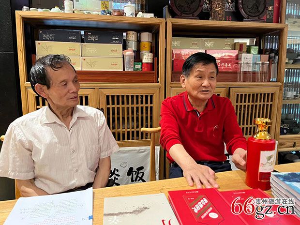 著名生态记者、《健康之友》报原总编、《贵阳文史》杂志总编辑罗万雄陪同著名作家叶辛品鉴"中版酱酒"。刘秀鸾 摄