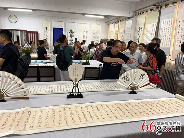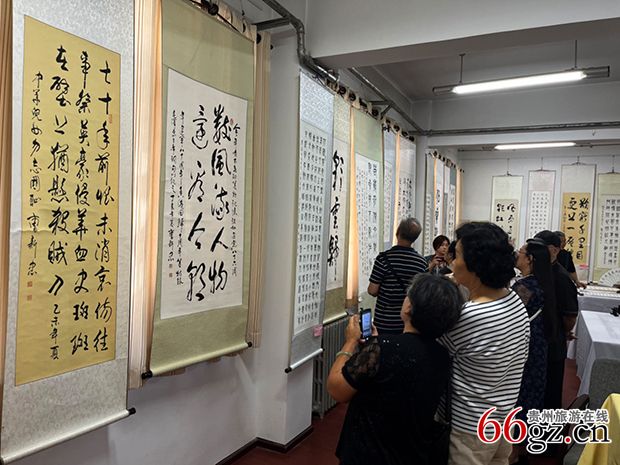 9月16日星期六,昔日静谧的贵州省政府9号楼宾客盈门,来自省内外的书法界、文化艺术界人士欢聚一堂,盛情祝贺省政府办公厅老年书画社顾问、八旬老人曹新忠的书法展开展(展至9月22日)——以翰墨流光颂征程、丹青亮彩写华章,向国庆74周年献礼。