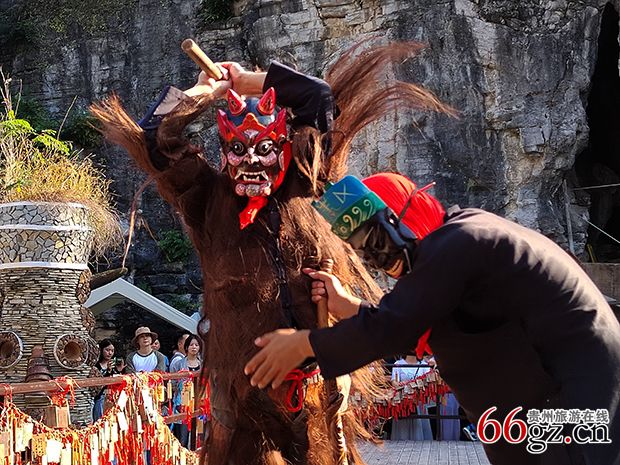 这次活动得到了贵阳市夜郎谷、花溪傩文化公园的大力支持,邀请到了印江县秦氏傩坛秦仁军一行在该景区(景点)演出。时间从2023年9月29日到10月8日结束,历时十天。每天两场,每场四个节目,第一场中午11:30到12:30,第二场下午15:00到16:00。演出剧目有《出台》、《报福报喜》、《开山》、《秦童》、《大姨妈说媒》、《梁山土地》、《判官》、《领生》、《上刀山》等。