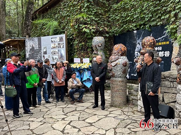 接着,主持人宣读全国各地专家学者的贺词。其中,著名作家、中国作家协会副主席梁晓声写道:“神秘的夜郎谷”摄影展是摄影家申家信在实地夜郎谷景区,用摄影的特殊语言向观者传达了在这个大型的空间,运用光和影再现了三维的立体场景。这些既真实又虚幻的塑像包容了夜郎文化的原型。这个影展不是简单的复制,而是摄影家运用形象思维以光影造型再现了神秘的夜郎谷;著名作家、中国作家协会副主席叶辛评语:摄影家申家信在夜郎谷大型雕塑作品前,用照像机再现了这一奇观。光影再现的这些雕塑作品,将特别唤起人们对静物的存在方式和意义的关注,“神秘的夜郎谷”确实神秘。