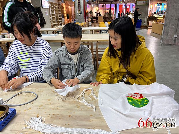 在现场,由“千企千品”重点企业和计划参加长三角文博会的企业参加布展,在几百平方米的展厅里,陈列着具浓郁贵州特色和地方风格的文创产品、民族民间工艺品、农产品、各类酒品、特色美食等;在现场体验区,企业代表们兴致勃勃学习非遗蜡染技艺,亲手制作扎染方巾,立即到染坊泡染、清洗、直至拿出成品,体验了整个工艺流程,对此交流体验平台予以高度赞扬。