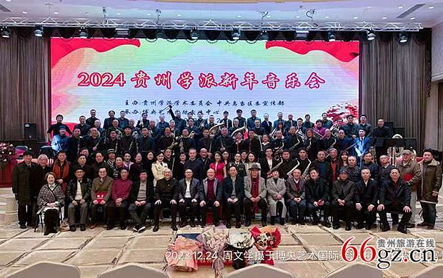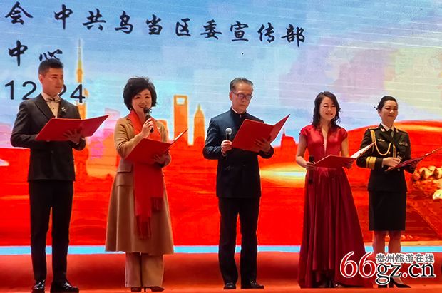 首先,贵州学派学术委员会秘书长殷平介绍莅临新年音乐会的嘉宾:著名文化学者、贵州学派学术委员主席顾久,中共乌当区委书记王鸣明,白宫总经理邓群英,贵州省文化厅原厅长、贵州学派学术委员会常务副主席徐圻,中共乌当区委常委、宣传部部长张薇,贵州学派学术委员会副主席陈世和、王六一。嘉宾为贵州学派文化艺术基地落户“白宫”六悦美术馆揭牌,邓群英致欢迎词,顾久为30多名新任贵州学派专家委员会专家颁发聘书,并致答谢词。