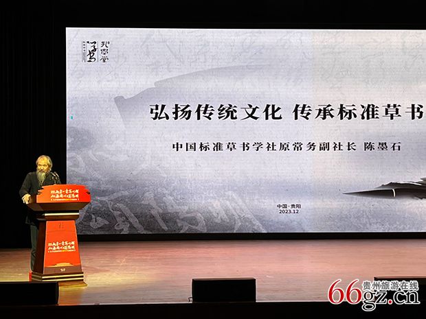 在启动仪式上,贵州省委统战部副部长、省台办主任刘睿致辞,贵阳市政协党组书记、主席石邦林讲话。市委常委、市委统战部部长徐红,省文联副主席、省书协主席包俊宜,中国书法学会理事长陈铭镜致辞。台湾中华孔子学堂联合总会名誉总会长陆炳文,中国标准草书学社原常务副社长、江苏标准草书研究院院长陈墨石,中国书法家协会会员、贵州省书法家协会第五届、第六届名誉主席黑卫平出席。