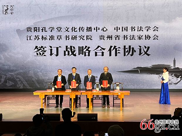 当天,台湾中华孔子学堂联合总会与贵阳孔学堂文化传播中心签订了战略合作协议,中国书法学会、江苏标准草书研究院、贵州省书法家协会与贵阳孔学堂文化传播中心签订战略合作协议,台湾中华孔子学堂联合总会、中国书法学会与贵阳孔学堂、市台办互赠文化礼品;在启动仪式及交流座谈中,多位嘉宾围绕相关主题激情发言。
