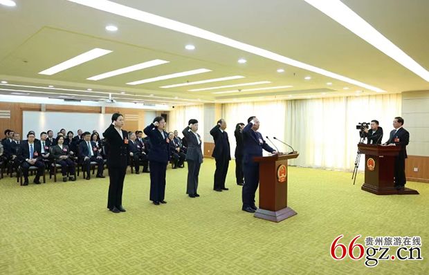 2月2日下午,贵阳市十五届人大四次会议宪法宣誓仪式举行,市人大常委会主任聂雪松主持并监誓,市人大常委会组成人员见证。新当选的市人大常委会副主任王启云、刘俐莎宣誓。