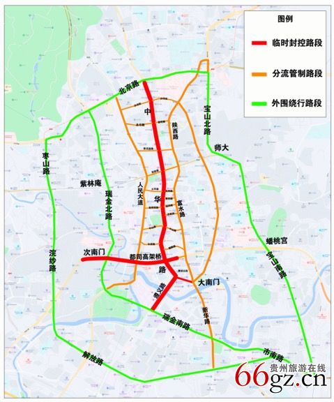 一、5月18日5:00起至12:30止,中华路(北京路交叉口至遵义路交叉口段)、遵义路(中华南路交叉口至瑞金南路交叉口段)、都司高架桥将实施临时交通管制,禁止一切车辆通行及停放。