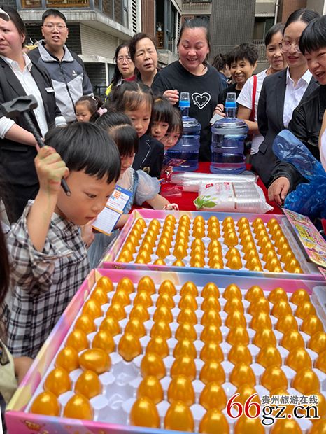 4点,准备工作就绪,孩子们依次进入第一站——登记取卡片(800张),之后凭卡片砸金蛋(1000个),砸开金蛋者获得里面的小礼物。接着进行抓娃娃(300个)、欢乐套圈圈(瓷娃娃500个)、捏捏乐(橡皮泥50个)、跳房子、趣味投沙包、传统投壶、幸运抽奖等。其中的跳房子、传统投壶、欢乐套圈圈、幸运抽奖项目由民生银行赞助,抽奖奖品有铅笔套装、荧光笔、本子、陀螺、涂色熊、积木、魔方、折叠扇等学习用品及趣味玩具。