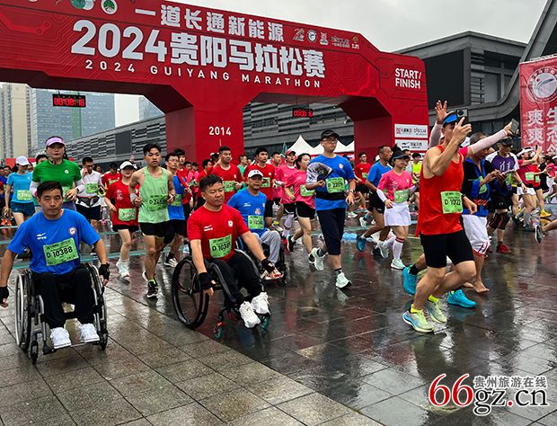 6月16日7点30分,世界田径联合会标牌赛事、中国田径协会体旅融合发展赛事、贵阳马拉松赛(简称“贵马”),在贵阳国际会展中心北广场鸣枪开赛。冠名为“一道长通新能源•贵阳马拉松赛”的“贵马”,继续沿用历届“爽爽贵阳 生态领跑”主题,吸引国内外20个国家和地区及全国34个省、自治区、直辖市、港澳地区的32000名选手尽展风采。浩浩荡荡的长跑队伍,穿行在观山湖区、白云区、高新区,在爽爽贵阳、美丽如画的赛道上,跑过各区(市、县)和各大赞助商设立的52个展演区域,亲身感受“千园之城”的生态环境、自然景观,体验大美之城的独特魅力与活力,充分享受 “贵马”健康快乐的精神本质。