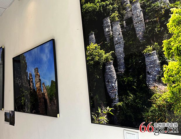 展厅布置颇具匠心、错落有致,四壁悬挂的大多数摄影作品以黑白元素为基调,间或穿插一些彩色图片作点缀,大幅的1.5米见方,小幅的几十公分,装裱精致典雅、水平超前。作品以强烈的黑白明暗对比,从不同視角展现神奇的夜郎谷石雕影像,既魔幻又真实,具穿越时空隧道的震撼力。申老师的影作运用各种光影变化和精湛技艺,通过多种摄影手段和独特技巧,将夜郎谷这些石雕具像转换为光影刻画的石雕影像,增强了视觉冲击力和艺术性。其构图远近虚实、光影色彩应用极为讲究,具写意画的浓郁意境及水墨画韵味,进一步深化了夜郎谷建造者宋培伦呕心沥血创作的这些石雕艺术品的文化内涵及审美价值,使古夜郎景观及古夜郎文化产生图说夜郎古国之效果。