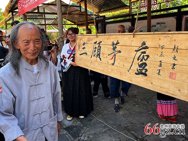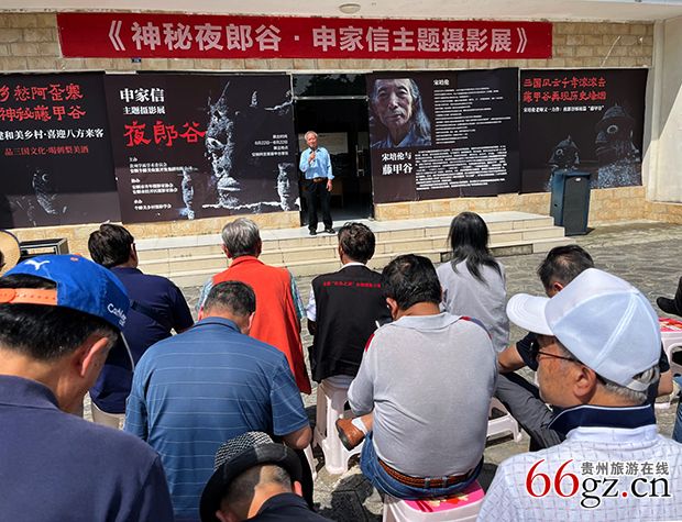7月6日逢布依族“六月六”传统节日,位于贵州省安顺市经开区幺铺镇的布依族古村寨阿歪寨的藤甲谷,阳光灿烂、热闹异常,到处洋溢着欢乐气氛——84岁著名摄影家、中国摄影家协会会员申家信的《神秘夜郎谷.申家信主题摄影展》巡展(简称摄影展)在这里惊艳开展,此为计划中的全省巡展第一站,展出申老师近10年间在贵阳花溪夜郎谷拍摄的数千幅图片中精选的63幅佳作。近百位摄影家、艺术家、历史学家及文化旅游界的专家学者和当地布依族群众踊跃参加开展仪式,兴高采烈度过一个非同寻常的“六月六”。大家高度赞扬申老师老骥伏枥、壮心不已,为终身酷爱的贵州摄影事业倾尽心力、无私奉献的崇高精神及做出的积极贡献。