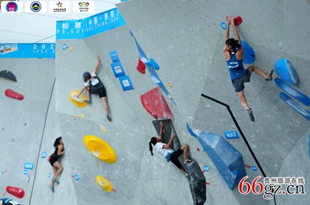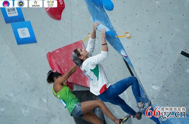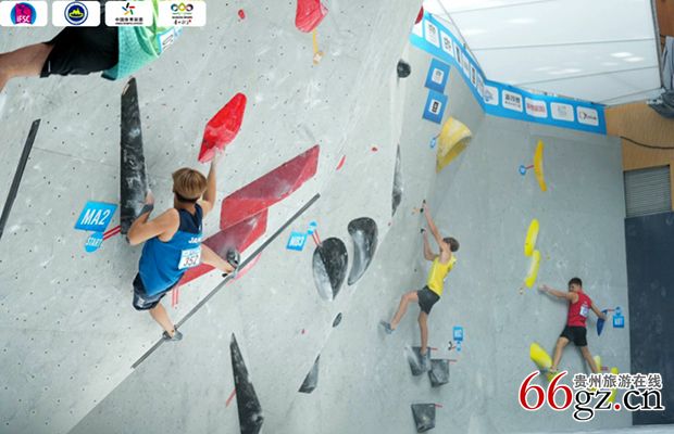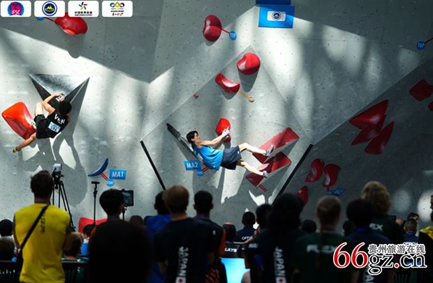 相比前几天的难度赛,攀石比赛更具观赏性,武侠小说里常提到的“飞檐走壁”,在赛场频频出现。