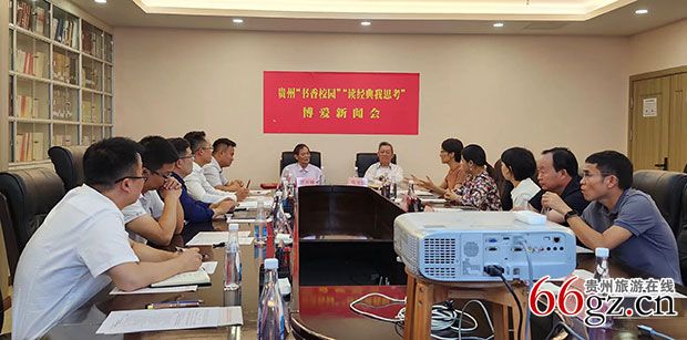 本站讯 记者从9月27日在贵州省政府迎宾馆举行的《贵州“书香校园”“读经典 我思考”博爱新闻会》感受到:在贯彻落实教育部等八部门《全国青少年学生读书行动实施方案》的工作中,“书香校园,读书励志,科学育人”;“书山有路勤为径,学海无涯苦作舟”;“读书破万卷,下笔如有神”;“熟读唐诗三百首,不会吟诗也会吟”。出自先秦《管子·权修》“十年树木,百年树人”的中华民族教书育人“读好书,多读书”的优良文化传统正在贵州校园内外传承复兴。贵州省政府原副省长、贵州省红十字会原会长马文骏,贵州省政府参事、贵州省自然资源厅巡视员王赤兵,贵州省政府参事、贵州省文化旅游厅巡视员姜刚杰,贵州省政府参事、省政协第十、十一、十二届常委付野秋,贵州省水库和生态移民局巡视员罗用能,高级记者、地理博导、贵阳科普作协秘书长罗万雄,全国政协委员、贵州省文史馆副馆长蒙爱军,贵阳科学技术普及作家协会副理事长洪剑,贵州红十字康旅研学公益基金会主任张玉,贵州红十字康旅研学公益基金会副主任、惠水县宏泰矿业有限公司董事长李启才,贵州青旅研学教育总经理刘琴,贵阳科学技术普及作家协会副秘书长张圣,《贵州教育报》总编辑王铁清,《贵州日报》主任记者王太师,《人大论坛》总编辑助理石雨浩,《贵州政协报》主任编辑田野,贵州省粤黔协作办公室主任记者王波等线上线下研究讨论。