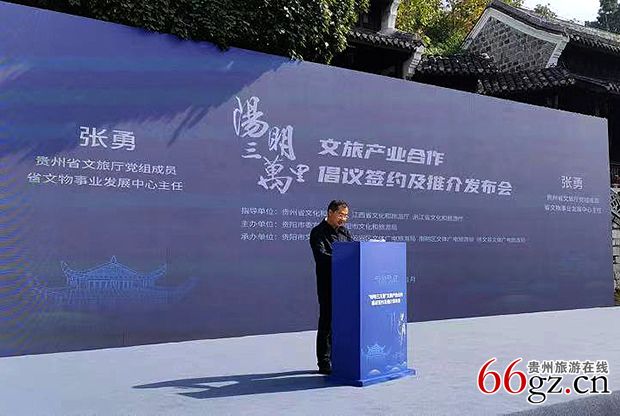 推介会由贵州省、浙江省、江西省文化和旅游厅指导,贵阳市委宣传部、贵阳市文化和旅游局主办,贵阳市文物保护中心、修文县文体广电旅游局、云岩区文体广电旅游局、南明区文体广电旅游局承办。贵州省文化和旅游厅党组成员、省文物事业发展中心主任张勇致辞,贵阳市文化和旅游局、吉安市青原区文化广电新闻出版旅游局、赣州市崇义县文化广电旅游体育局、余姚市文化和广电旅游体育局分别进行了阳明文化旅游宣传推介;由贵阳广电传媒集团创编的情景剧以古今对话的方式,沿着王阳明曾经的足迹再探贵州,展现多彩贵州的文旅优势和贵阳“六爽”文旅IP。