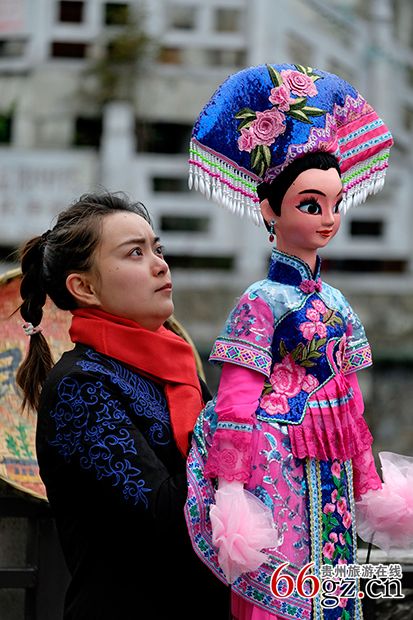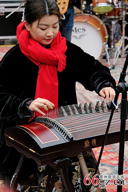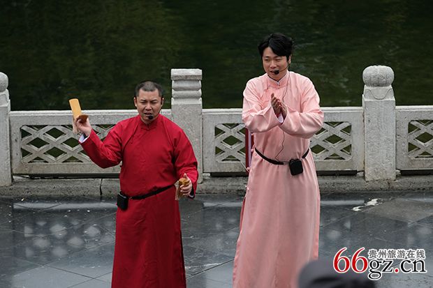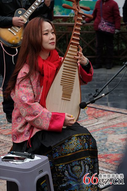 除了舞狮,牌坊前还有小乐队表演,相声表演,民族布娃娃表演,节日气氛浓郁。