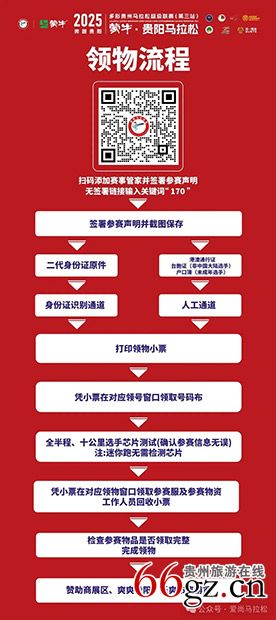 领取时间为6月12日10:00-18:00,6月13日10:00-20:00,6月14日10:00-21:00;领取地点贵阳市观山湖区会展北路贵阳国际会议展览中心5号馆(地铁1号线国际生态会议中心站C出口);须参赛者本人携带有效证件原件亲自前往现场领取,未成年人可由监护人被携监护人及其身份证或户口簿到现场领取。