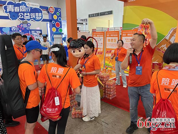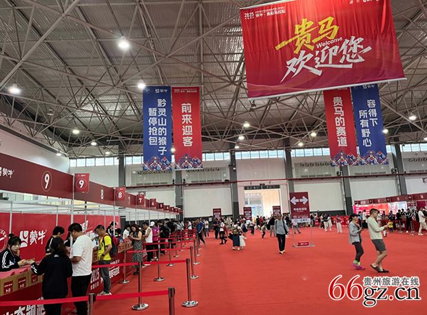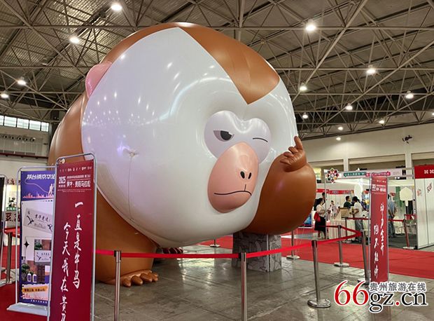有趣的是,展馆里悬挂多福竖旗,其中一幅为“黔灵山的猴子暂停抢包”。