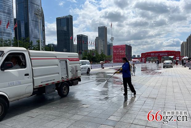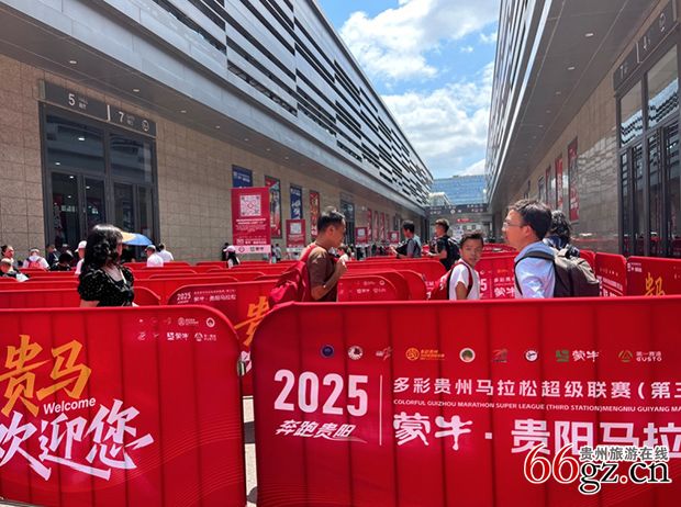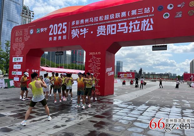 6月14日,2025多彩贵州马拉松超级联赛(第三站)暨蒙牛•贵阳马拉松(简称“贵马”)倒计时1天,爽爽贵阳以摄氏30度气温使“贵马”热沸腾了。记者在比赛出发地、贵阳国际会展中心北广场看到,一排排赛旗迎风飘扬,工作人员顶着烈日清洗赛道,红色巨型拱门格外抢眼,一批批跑者在熟悉场地,其中不乏轮椅参赛者。