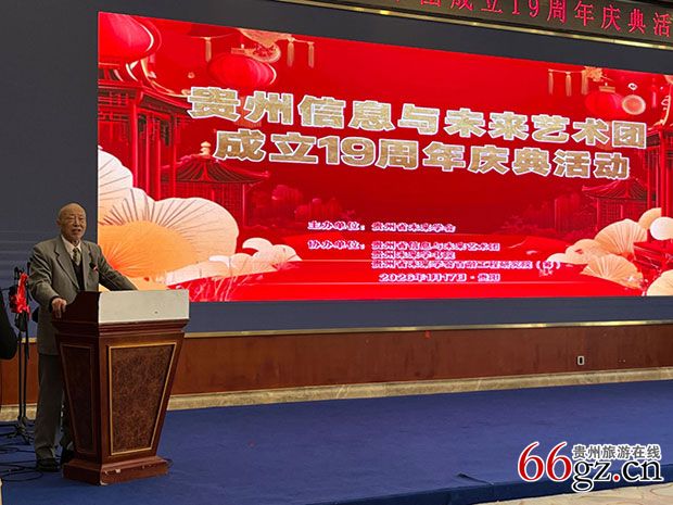 艺术团为经政府相关部门批准、由学术团体创建的公益性组织,本次庆典由贵州省未来学会主办,贵州省信息与未来艺术团、贵州未来学会百龄工程研究院(筹)协办。在庆典会场背景板上,融合数字元素与艺术线条的19周年主题Logo格外醒目,舞台LED屏幕在璀璨灯光下营造出浓郁的科技艺术氛围,充分彰显艺术团新、特、精的初心及庆典的主题特色。