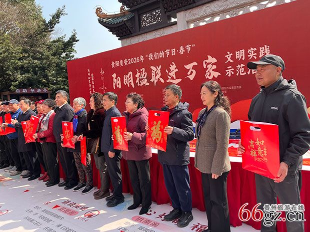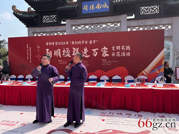 2月6日,爽爽贵阳格外爽爽,暖暖艳阳赶走了连日来的阴雨寒潮,迎接贵阳贵安2026年“我们的节日·春节”——“阳明楹联进万家”文明实践示范活动(简称活动),在甲秀楼、孔学堂、阳明祠、中国阳明文化园、贵阳市图书馆、各区(市、县)新时代文明实践中心及部分所(站)同步举办,深度挖掘阳明心学思想精髓,以“阳明楹联”为切入点,推进贵阳贵安阳明文化转化运用,助力移风易俗,共育文明新风。