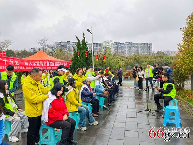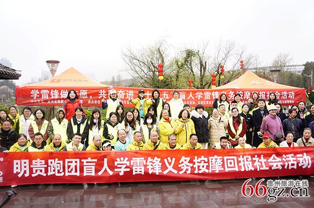 3月5日上午,贵阳市阴雨绵绵,以“学雷锋做志愿,共同奋进‘十五五’”为主题的盲人学雷锋义务按摩回报社会活动(简称活动),如期冒雨在山湖公园举行,盲人朋友们用双手传递温暖,志愿者们用脚步丈量担当,全社会用爱心汇聚力量,使广大现场群众深受感动。