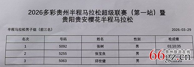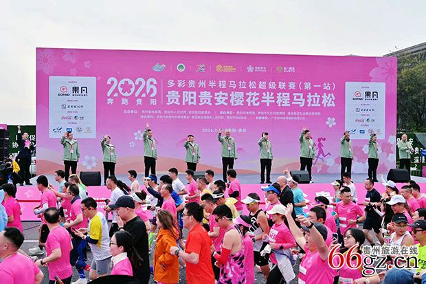 3月29日,天公作美,一场大雨后的贵阳贵安艳阳高照、空气清新,2026多彩贵州半程马拉松超级联赛(第一站)暨贵阳贵安樱花半程马拉松如期在樱花园精彩举行。6000名马拉松爱好者从贵安新区规划艺术馆出发,经百马大道→清安大道→数谷大道→安康大道→百马大道→南沙路→百马大道,返回规划艺术馆。参赛者朝气蓬勃、斗志昂扬、健步如飞,成为樱花园另一道独特的迷人风景线,其中的37名残疾人参赛者,包括肢体、听力、视力等障碍者格外引人注目。