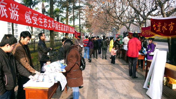 2009年1月18日,春节来临之际,六盘水市旅游局为落实国家旅游局2009年提出的“生态旅游年”,主题:走进绿色旅游,感受生态文明的活动宗旨,组织辖区各区.县旅游景点.景区.旅行社进行了上街旅游促销活动,根据各区县的特点推出了独具特色的民族节日活动,如:六枝特区初十的长角苗跳花节、盘县初一至十五的玩水洞对歌节、水城县二月十五的南开跳花节、钟山区初一至十五的灯展。促销当日共发放宣传资料6千余份,为凉都市民春节出游提供了多姿多彩的活动。