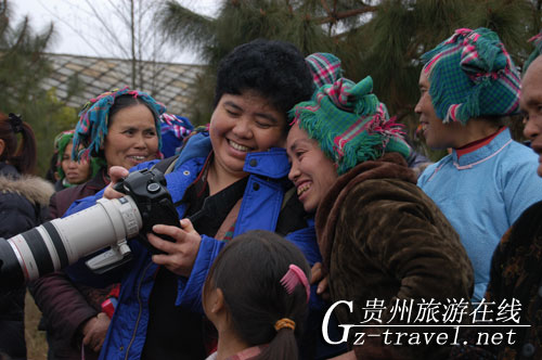 本站讯:2月3日,由珠海摄影家协会、贵州旅游在线、贵州商报联合组织,为期七天的“六盘水摄影活动”,第一站来到了“中国布依第一村”的陇角布依族乡月亮河夜郎布依文化生态园。刚下车,世界最大的铜鼓群“布依神鼓”和沿山而建的666米布依文化长廊,就吸引了摄影家们的眼球。按照当地习俗,远方来了客人,布依姑娘们抬出了自家酿的米酒,唱着布依敬酒歌,敲着铜鼓热情的为他们接风洗尘。在生态园内,布依同胞们打起铜鼓、唱着布依山歌,和布依同胞们一起跳布依舞,一连串的民俗活动把现场气氛一次又一次的推向高潮,而摄影家们的手指始终停留在快门键上,记下了一个又一个精彩的瞬间。