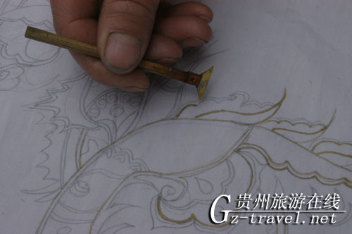 贵州少数民族蜡染工艺的重要环节就是在白布上画蜡画