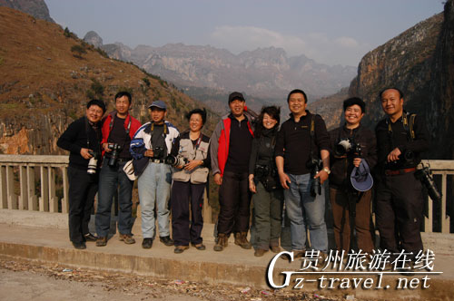 六盘水市旅游局市场开发科科长王述慷(左五) 贵州旅游在线总经理谢志强(右三)与摄影家们合影