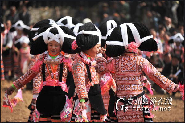 2010年2月23日,农历正月初十,一年一度的六枝梭戛长角苗跳花节在梭戛生态博物馆新建的跳花场上隆重举行。跳花场上,苗族同胞身穿民族服饰,鼓声阵阵,欢歌笑语,跳起优美的芦笙歌舞欢迎远方的客人。