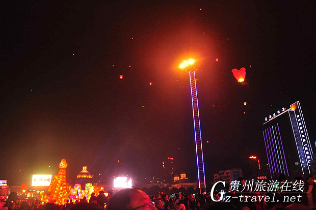 六盘水世纪广场上空飞舞的花灯